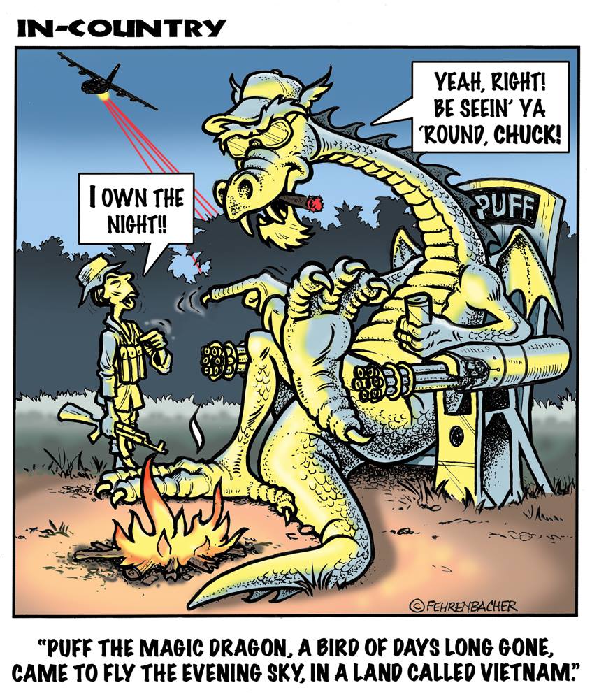 Phil enlisted in the Army in 1965 where you served for years in Vietnam.  He became a graphic designer and has worked for the state of Oregon for 26 years.  He retired in 2003 and started the Cartoon "In-Country".  The cartoons reflect his experiences during his tour of duty in South Vietnam.